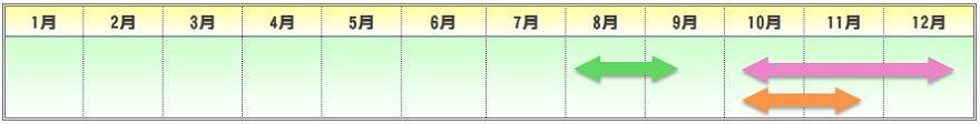 | 播種期 | 定植期 | 収穫期 | 出荷最盛期 |