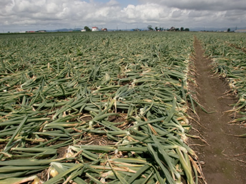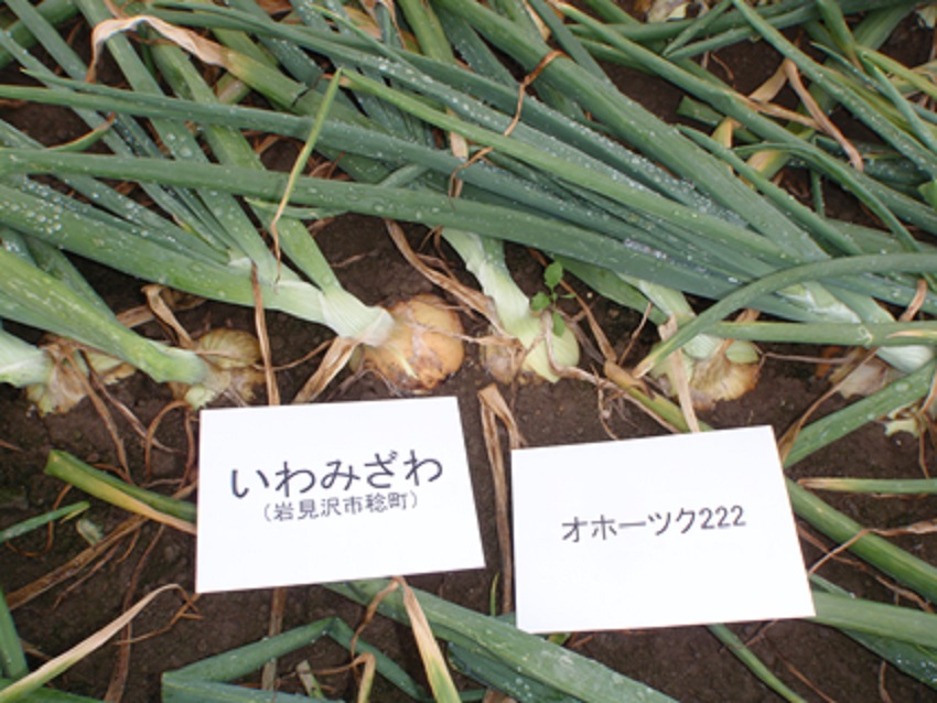 ・中上段:中生種の北もみじ2000、倒伏した圃場。根切り前(9月上旬予定)、まだ玉肥大する。 ・上段、中上段は同一圃場で畝違い。8/7撮影。 ・中下段、下段は上2枚とは違う圃場。 ・中下段:早生種のオホーツク222、倒伏した圃場。根切り前(8月下旬予定)、まだ玉肥大する。 ・下段:倒伏した圃場の全景写真。(本日8/18撮影したもので降雨後の状態) | ||||||