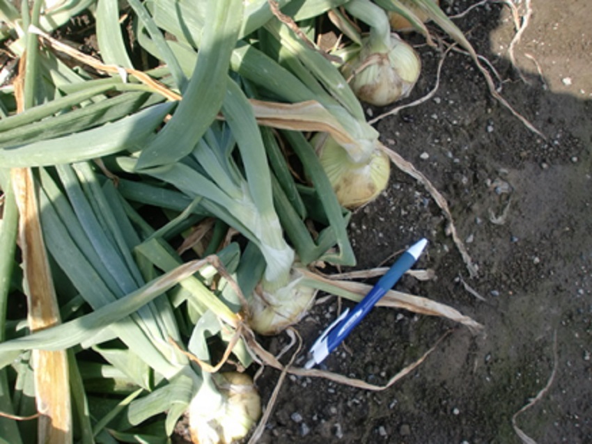 ・中上段:上と同一圃場であるが畝違い 倒伏した圃場。 ・中下段:中上段と同じ圃場。倒伏しているが、根切り前で球径は約8cm程。 ・下段:道一つ挟んだ向かいの圃場 倒伏前の圃場。 ・雨の影響もあり、圃場はトラクターが入れないほどの過湿状態。 | ||||||