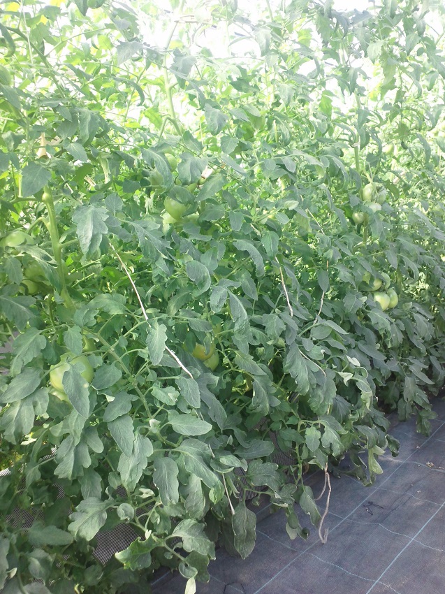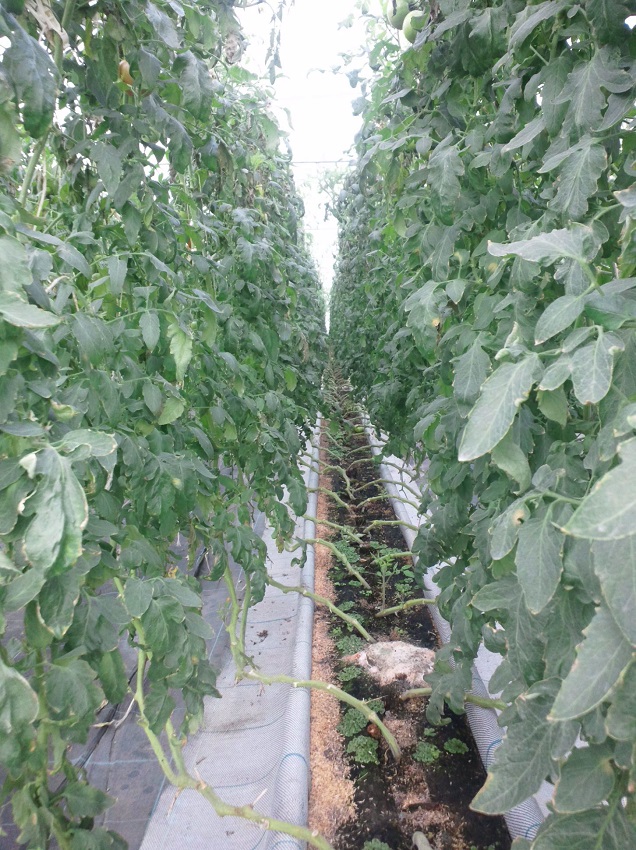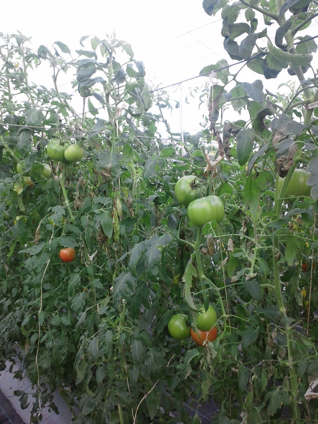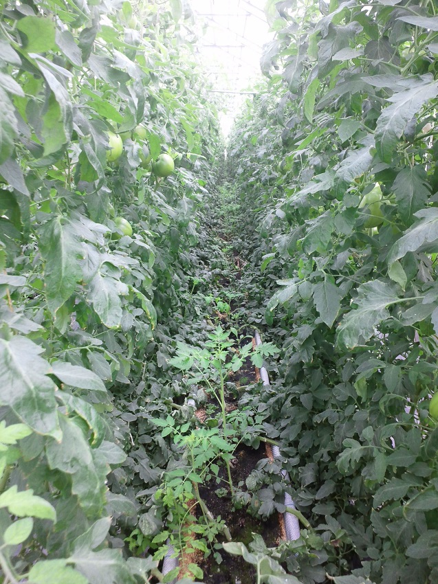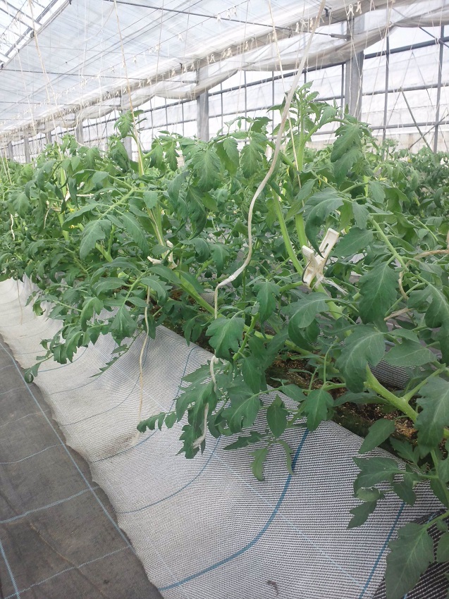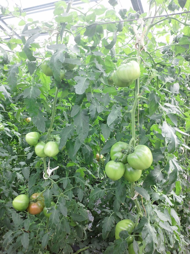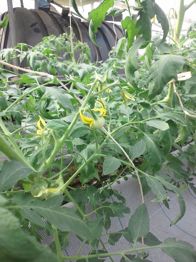 ・着果は良好だが日照不足の影響で上段の花が弱っている。
