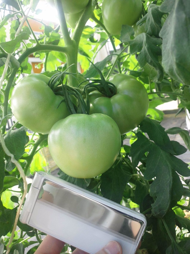 ・中上段:6段目の玉の大きさ。 ・中下段:生育途中(着色期の5段目〜7段目)の玉の様子。 ・下段:ハウス内の様子。 | ||||||