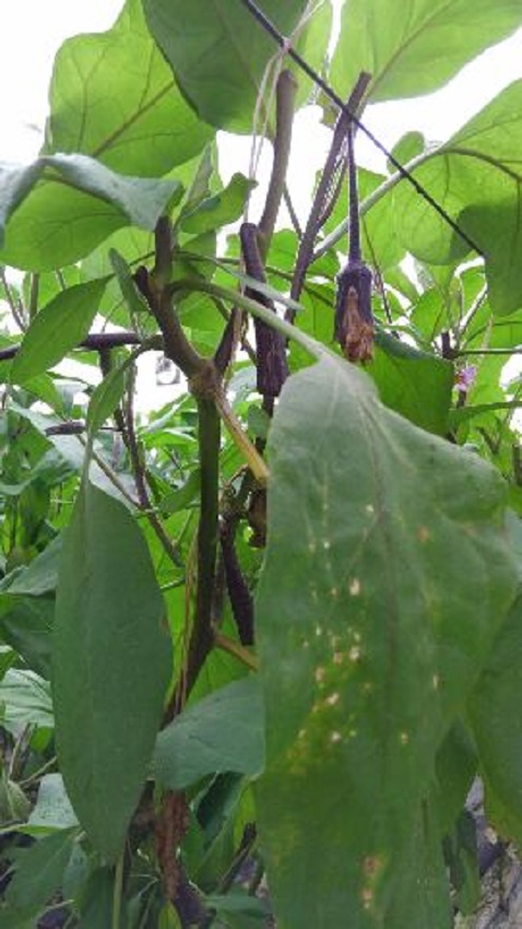 ・上段:高温多湿と成り疲れで樹勢が弱まっている。