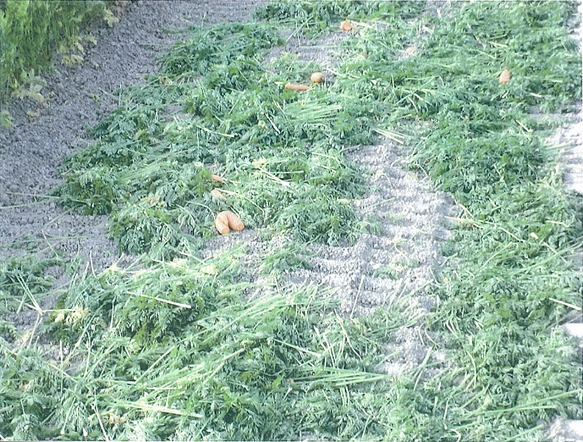 ・また、水分が多く傷みやすい点が心配されており、選果選別には十分注意が必要である。 ・この時期、最後の追い込みということで急ピッチで収穫作業をしているが、本年は雨・曇天が続き適期収穫が間に合わず、多くの傷んだにんじんが圃場に捨てられている。 | ||||||