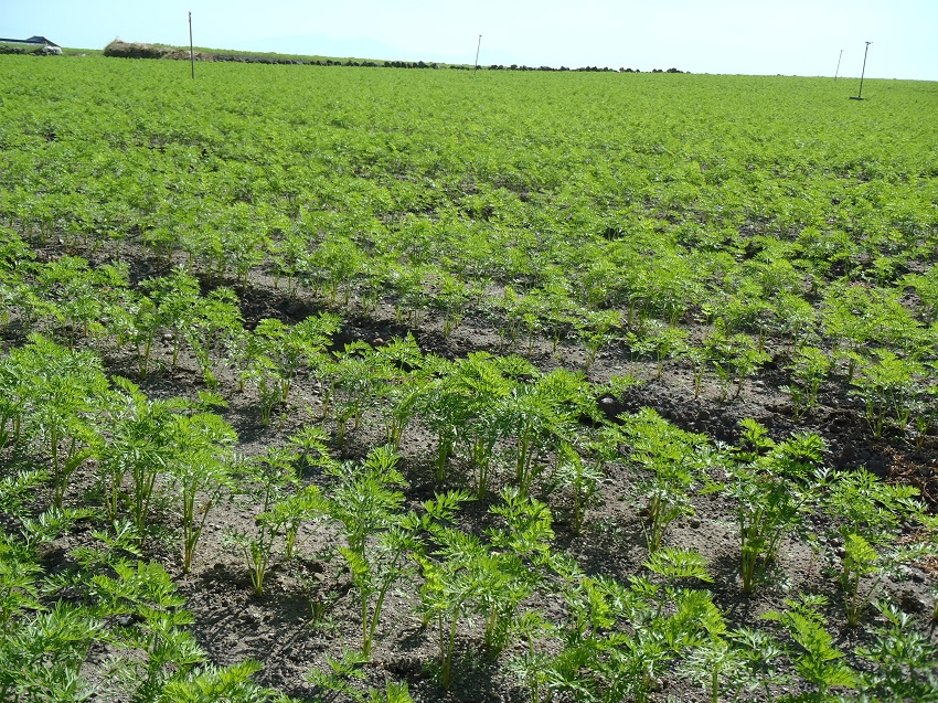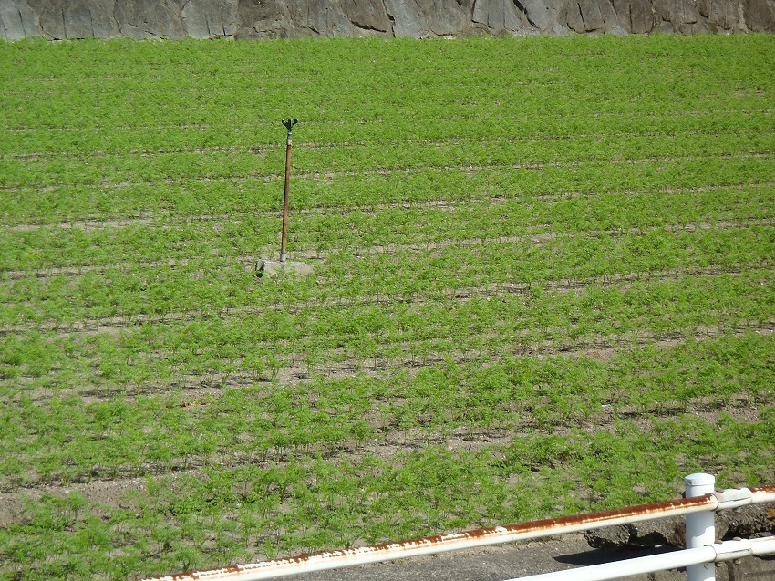 ・多少、水不足のため7割の生育。 ・L、LL中心の規格に合わせるため、一部の圃場は畦の間隔を広げている。 | ||||||