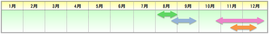 | 播種期 | 定植期 | 収穫期 | 出荷最盛期 |