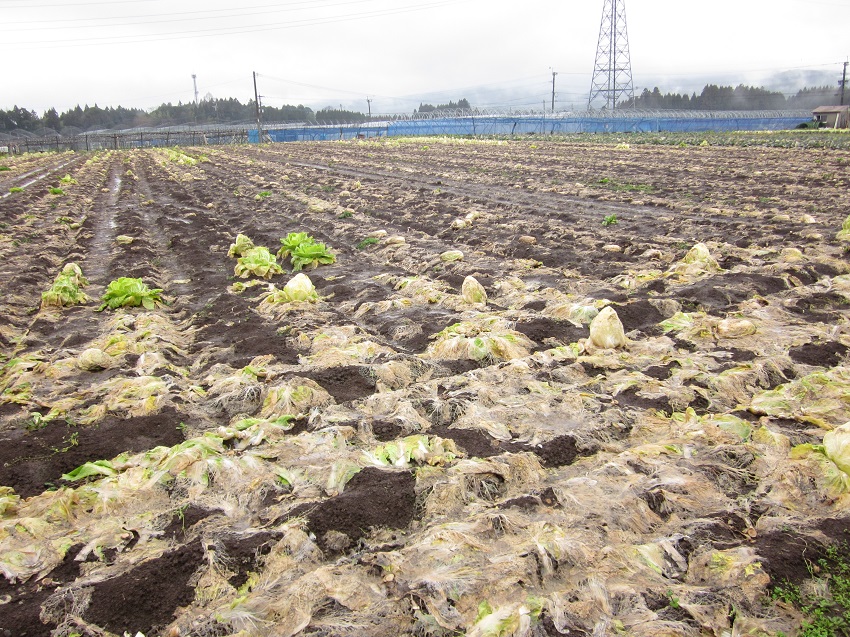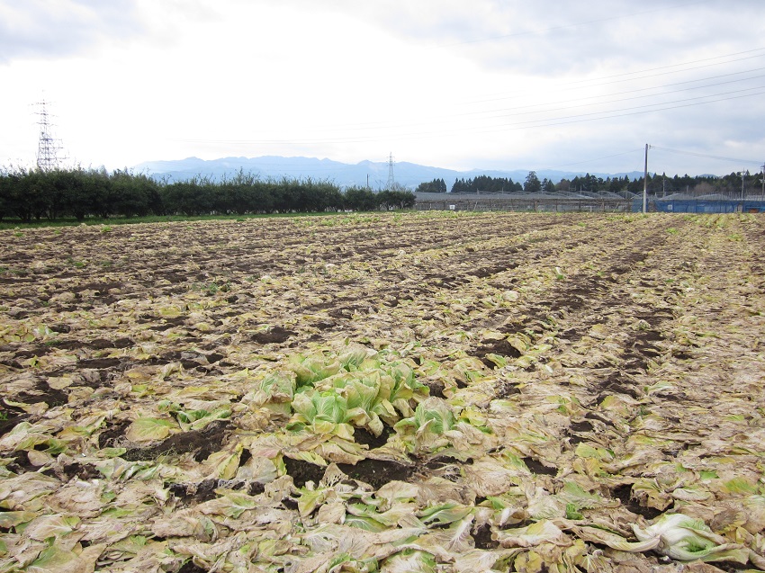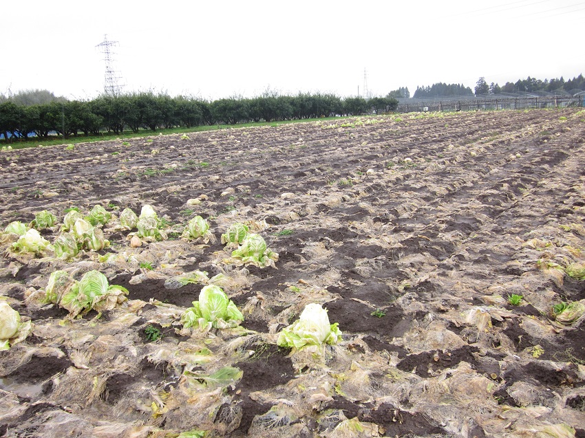 ・播種、定植が雨で遅れ、10月の干ばつで生育が不揃い、11,12月の温かい雨で大玉傾向、病気多発。