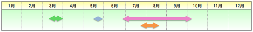 | 播種期 | 定植期 | 収穫期 | 出荷最盛期 |