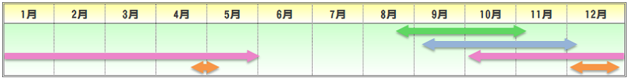 | 播種期 | 定植期 | 収穫期 | 出荷最盛期 |
