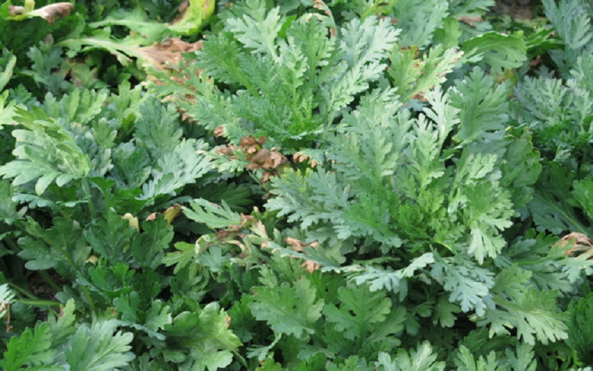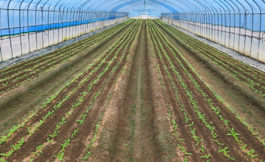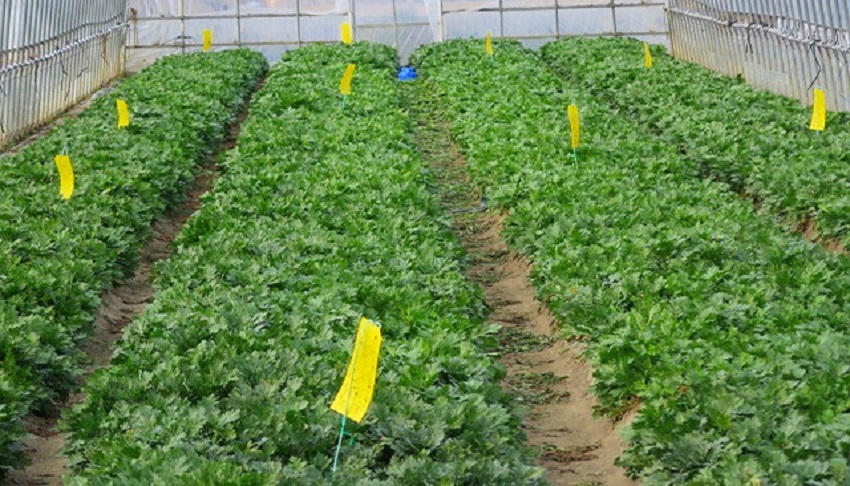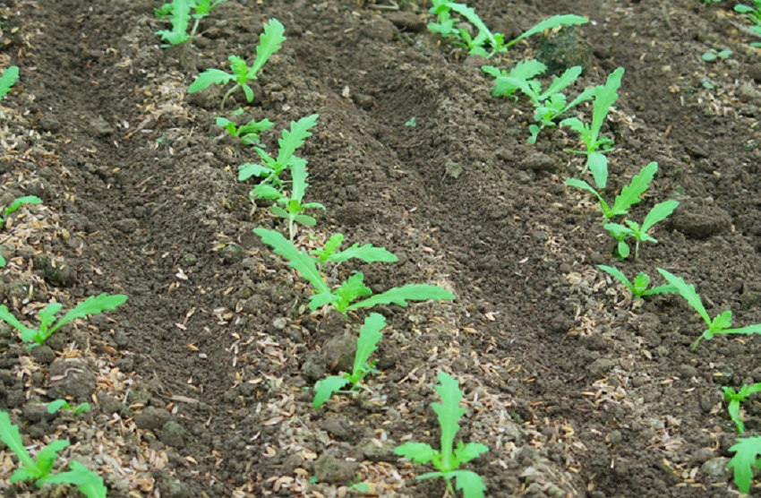 ・上段、中上段:産地でもっとも早い9月12日に播種されたしゅんぎく圃場。