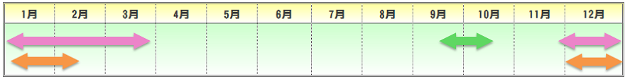 | 播種期 | 定植期 | 収穫期 | 出荷最盛期 |