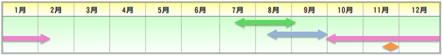 | 播種期 | 定植期 | 収穫期 | 出荷最盛期 |