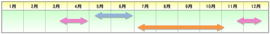 | 播種期 | 定植期 | 収穫期 | 出荷最盛期 |