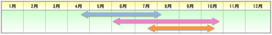 | 播種期 | 定植期 | 収穫期 | 出荷最盛期 |