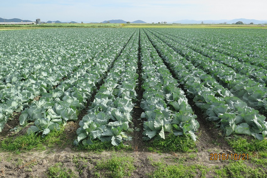 ・今年は3か月予報によると、気温は平年並み40%高温50%とされており、キャベツの生育はやや進むものと思われる。