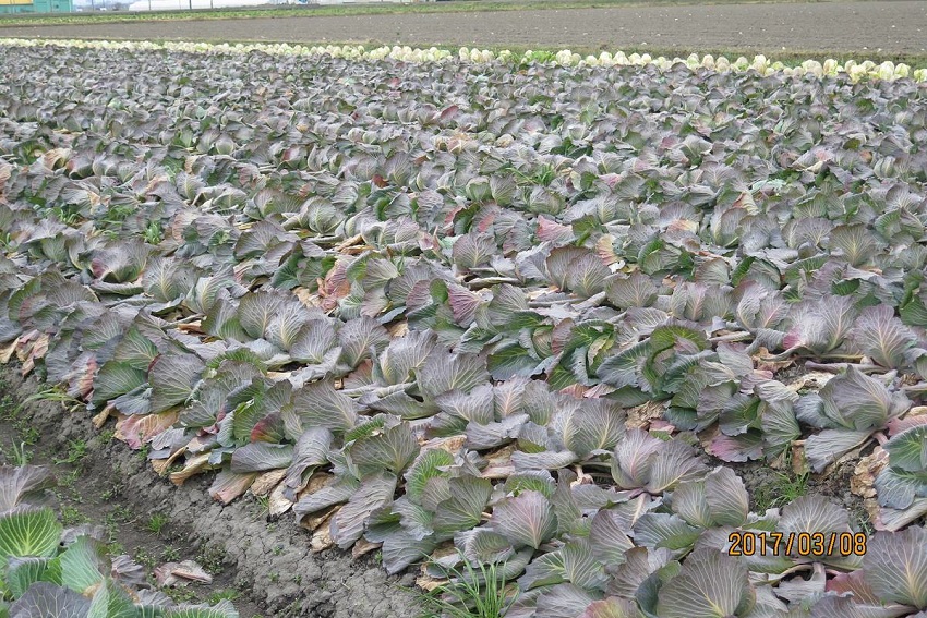 ・1,2月の低温により生育は抑えられ、積雪による外葉の傷みが見られた。特に9月下旬以降に定植された株の生育が著しく劣った。
