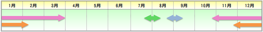 | 播種期 | 定植期 | 収穫期 | 出荷最盛期 |