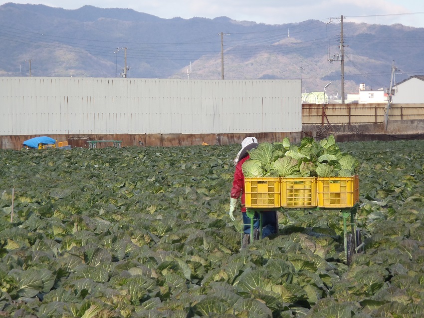 ・下2枚の写真は、9月初旬に定植された品種“恋岬”。 ・12月中旬頃から出荷予定。 ・気温が高かったので、害虫が発生している圃場も見られる。 | ||||||