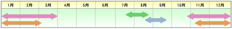 | 播種期 | 定植期 | 収穫期 | 出荷最盛期 |