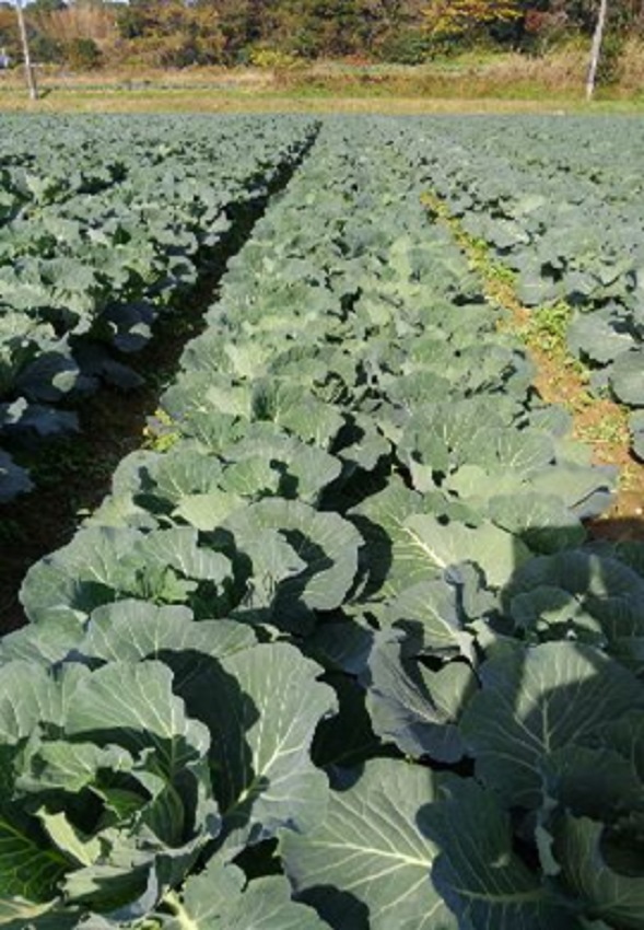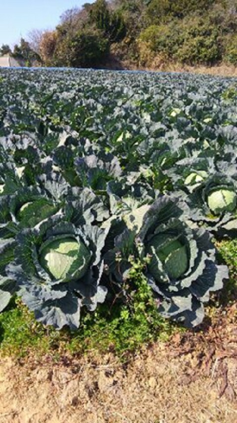 年明け出荷分の圃場。 ・下2枚:JA北九キャベツ圃場、若松地区、12/2現在。 年内出荷分。 | ||||||