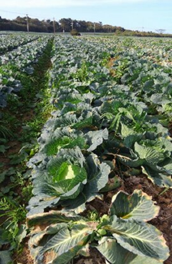 2月出荷予定の圃場。 病虫害は見受けられない。 ・下2枚:JA北九(若松地区キャベツ圃場)1月19日撮影。 3月出荷予定の圃場。 | ||||||
