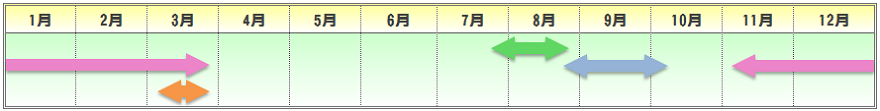 | 播種期 | 定植期 | 収穫期 | 出荷最盛期 |