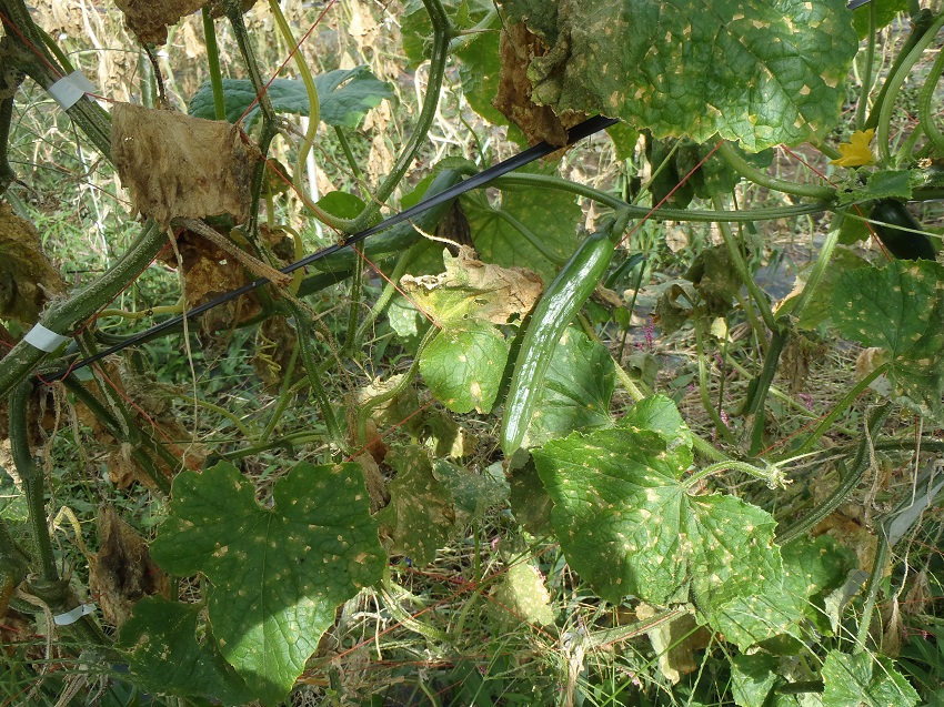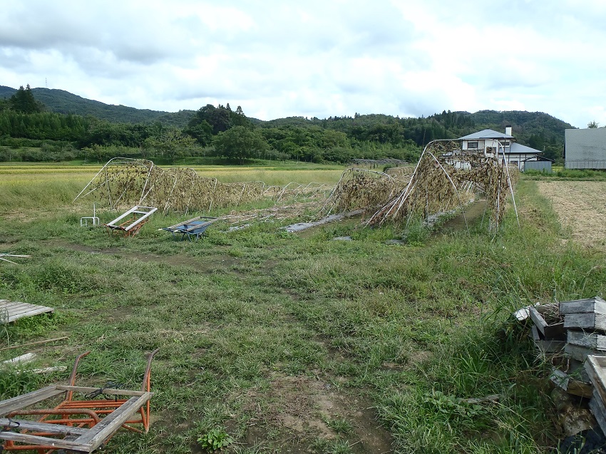 ・今回調査した圃場は、台風10号による強風で支柱が倒壊したこともあり、予定より終了が早まったとのこと。 花芽はまだあるものの、規格はあまり揃わず、規格外品や自家消費用等の収穫も増えている。 ・中下段:8/30台風10号、強風による被害圃場。 | ||||||