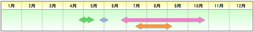 | 播種期 | 定植期 | 収穫期 | 出荷最盛期 |