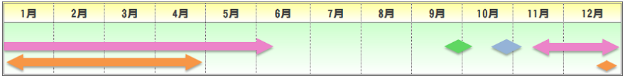 | 播種期 | 定植期 | 収穫期 | 出荷最盛期 |