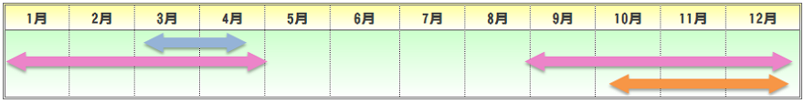 | 播種期 | 定植期 | 収穫期 | 出荷最盛期 |