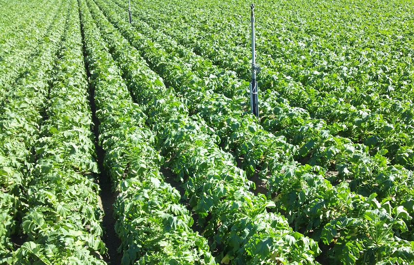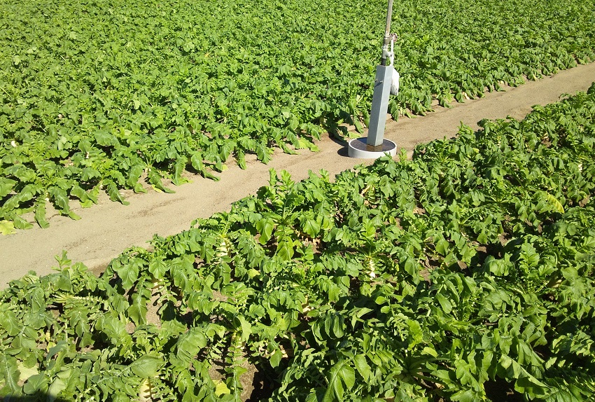 ・連日の暑さからか、スプリンクラー等で散水している圃場が多く見受けられた。