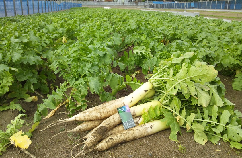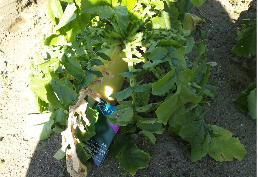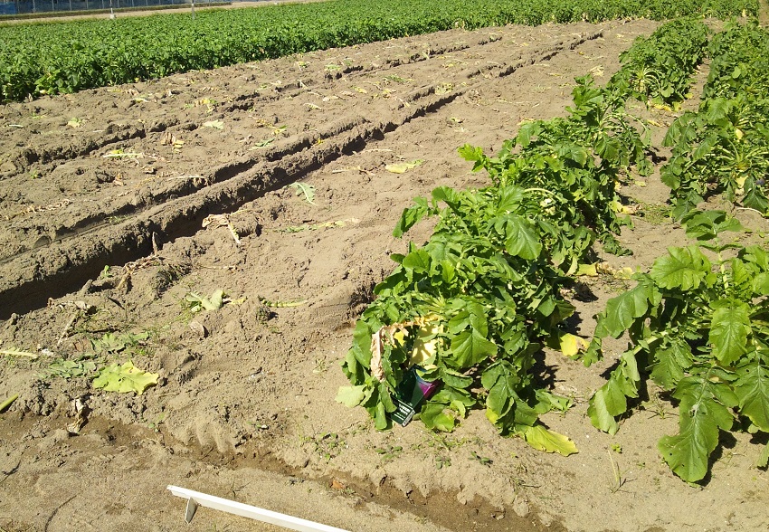 ・表面にひび割れのある大根が、ごく僅かながら圃場に放置されている。