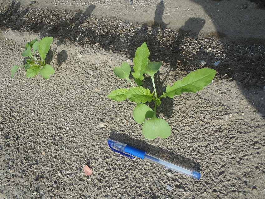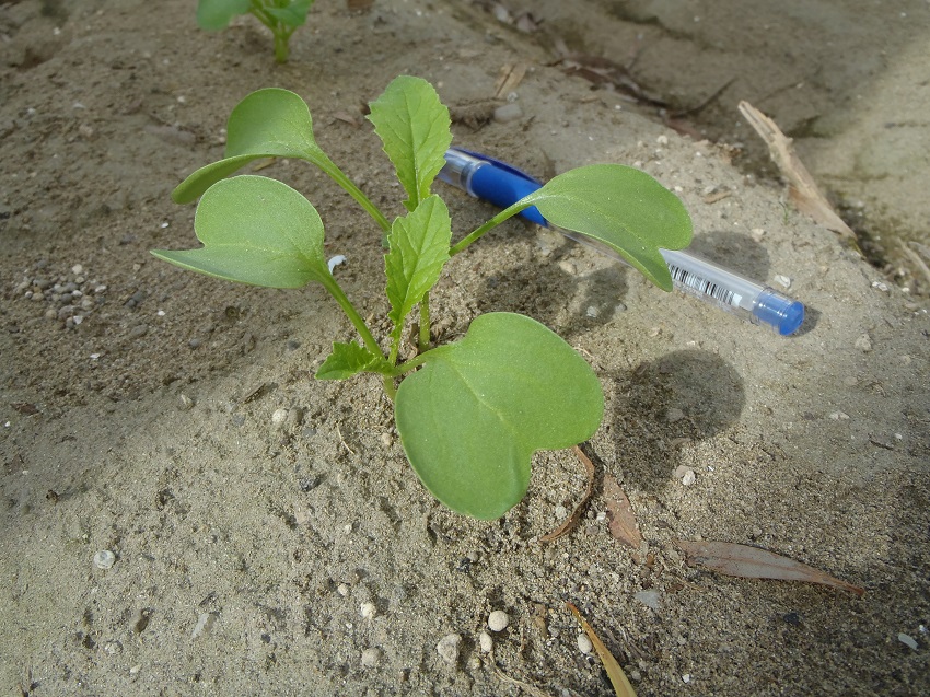 ・年内どりのものは、9月中旬に播種し、9月下旬まで2日毎に収穫日を設定した栽培計画に基づき播種を行う。 ・収穫は11月中旬から始まり1月上旬まで行う。 ・年明けどりは、9月下旬から10月上旬にかけて播種し、1月上旬から2月まで収穫を行う。 ・9月中旬以降、秋雨前線や台風の影響により、曇りや雨の日が多く、蒸し暑い日が続いており、今後病気の発生率が高くなるかもしれない。 ・上段:播種日9/22。 ・中上段:播種日9/18。 ・中下段:播種日9/16。 ・下段:播種後11日。 | ||||||