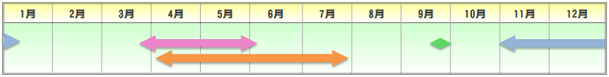 | 播種期 | 定植期 | 収穫期 | 出荷最盛期 |