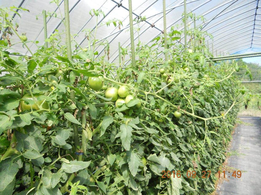 ・中上段:同上。病気による落果も見られた。 ・中下段:しばらくは順調な出荷が見込まれる。 ・下段:収穫直前のトマト。 | ||||||