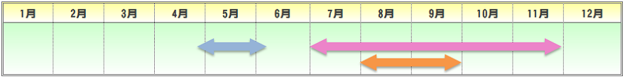 | 播種期 | 定植期 | 収穫期 | 出荷最盛期 |
