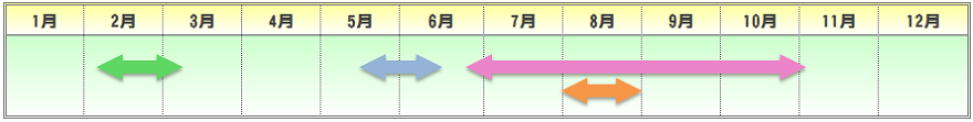 | 播種期 | 定植期 | 収穫期 | 出荷最盛期 |