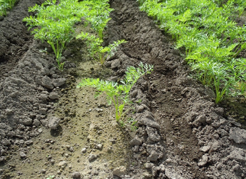 ・上段:8月8日播種した圃場。灌水が不十分。