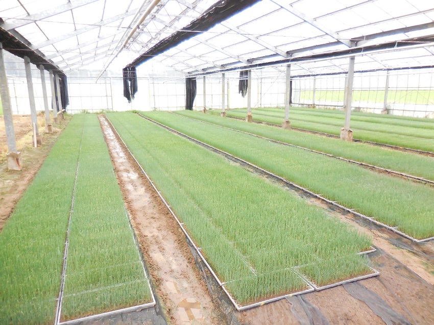 ・本苗は5月12日にチェーンポットに播種されたものであり、6月29日、30日に生産者に対して配付が行われる予定。 ・苗の生育は順調である。 ・育苗センターで生産された苗は、全作付面積の約16%を占めている。 | ||||||