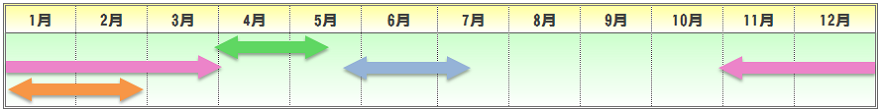 | 播種期 | 定植期 | 収穫期 | 出荷最盛期 |