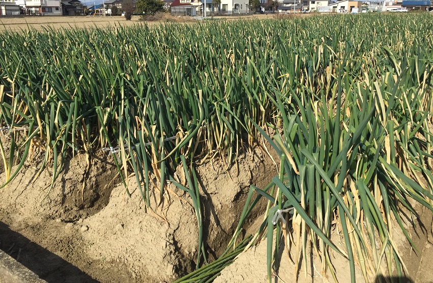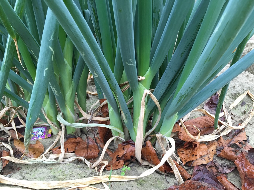 ・7月下旬、本定植、他の生産者の圃場より生育が進んでおり最後の土寄せを行う予定。 現在、稲刈りの真最中のため、ねぎの作業が中断している。 ・品種は越津(種は自家採取)。 | ||||||