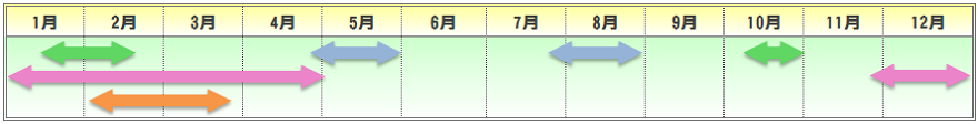 | 播種期 | 定植期 | 収穫期 | 出荷最盛期 |