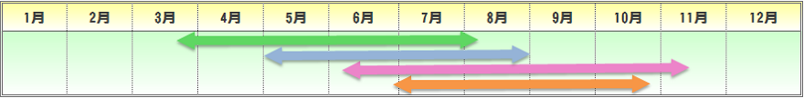 | 播種期 | 定植期 | 収穫期 | 出荷最盛期 |