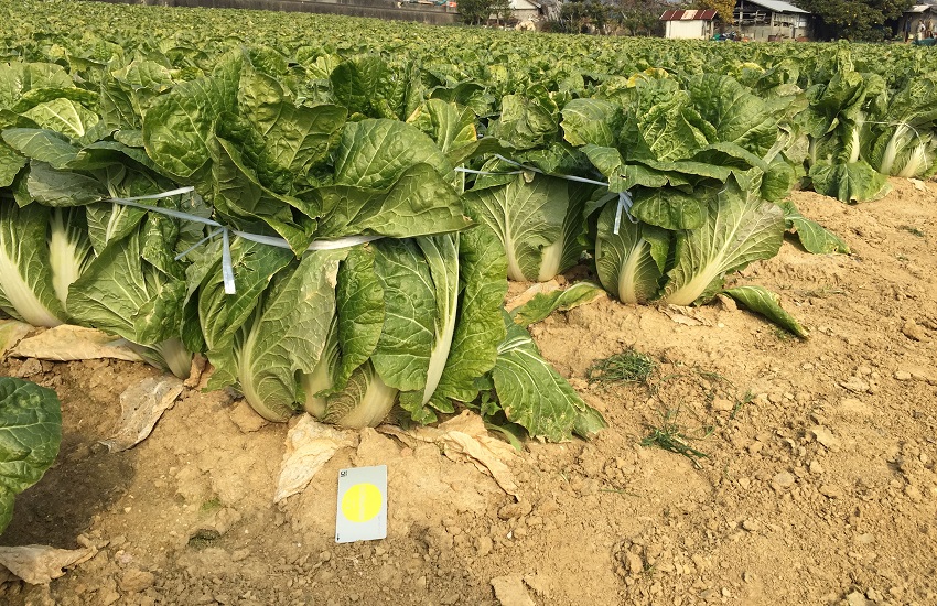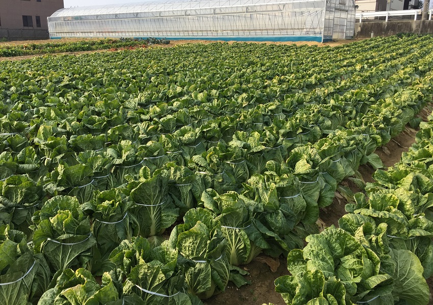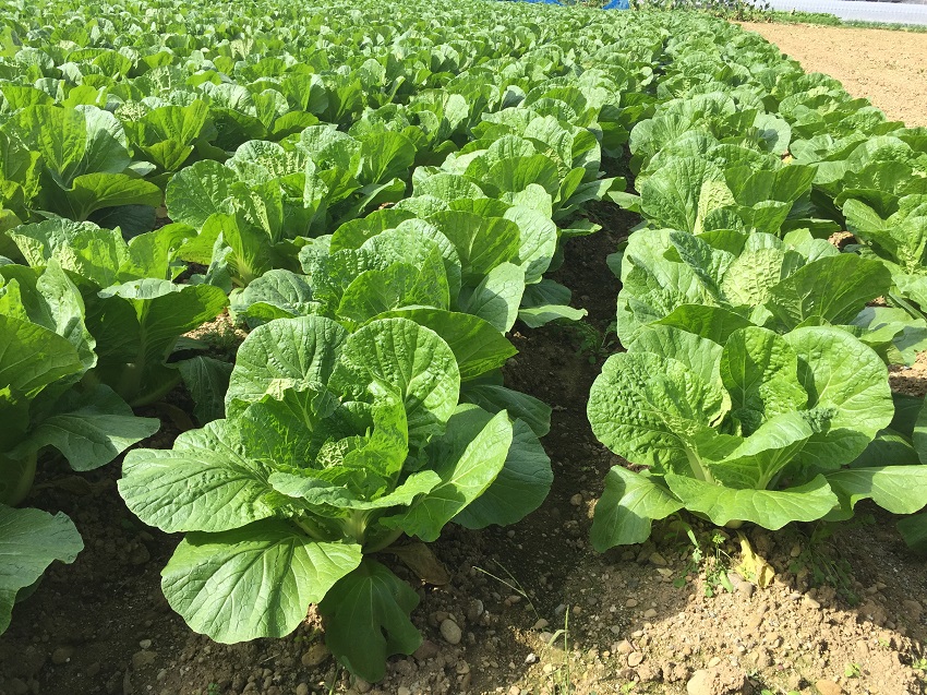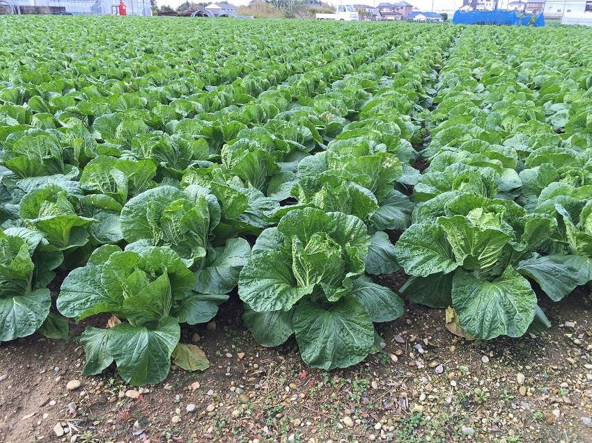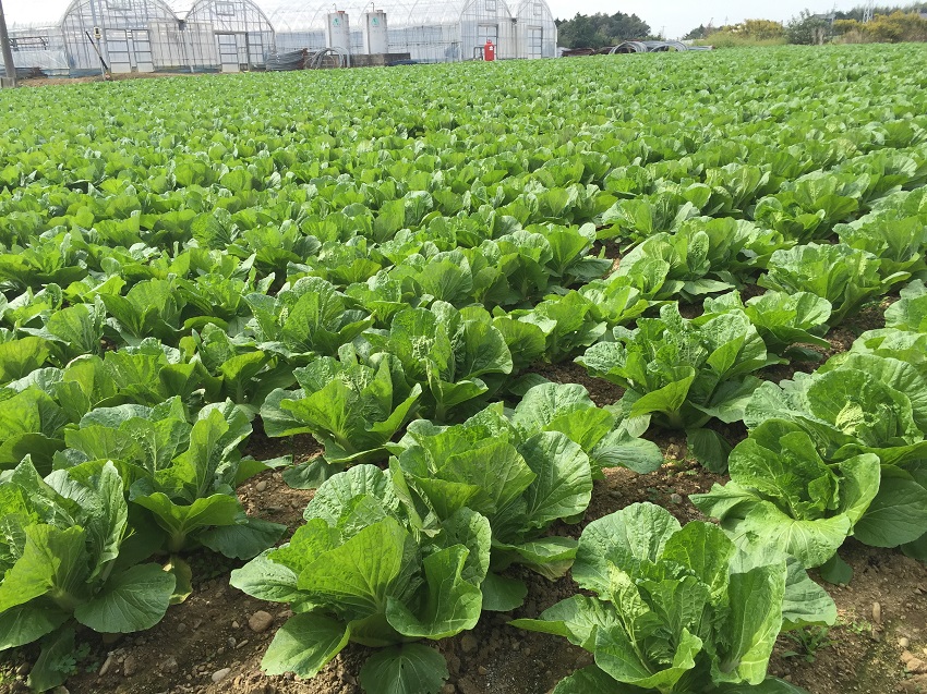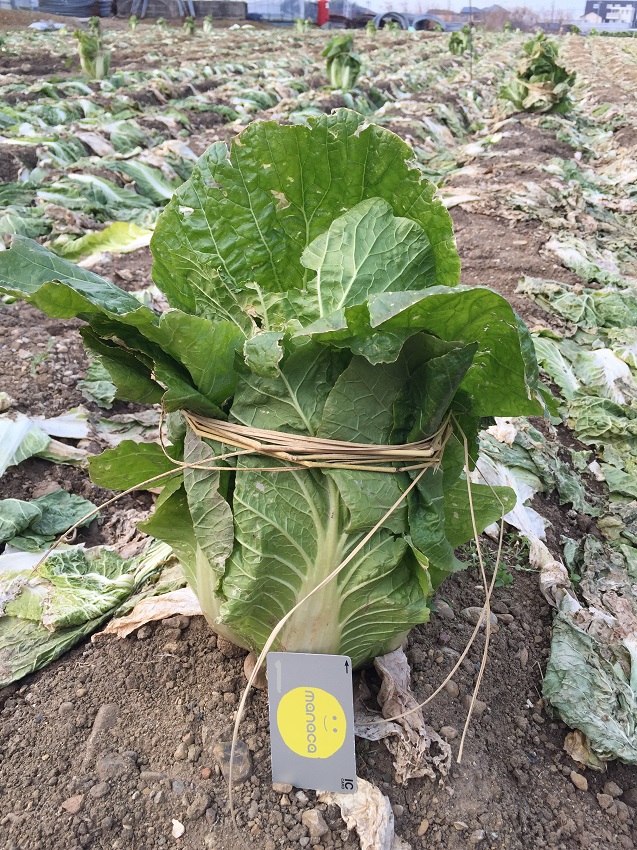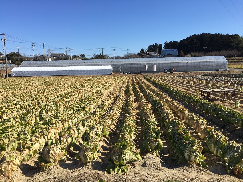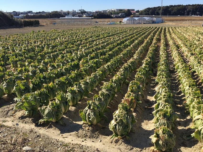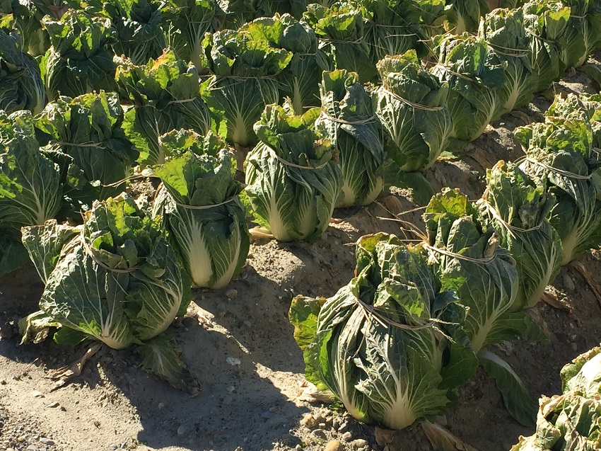・上段、中上段:この圃場は1月中旬にてほぼ出荷終了。(はくさいはわらで巻いている)