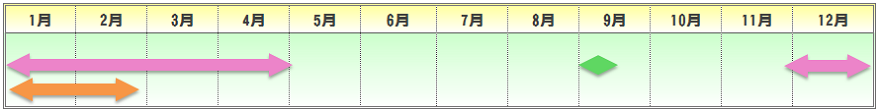 | 播種期 | 定植期 | 収穫期 | 出荷最盛期 |