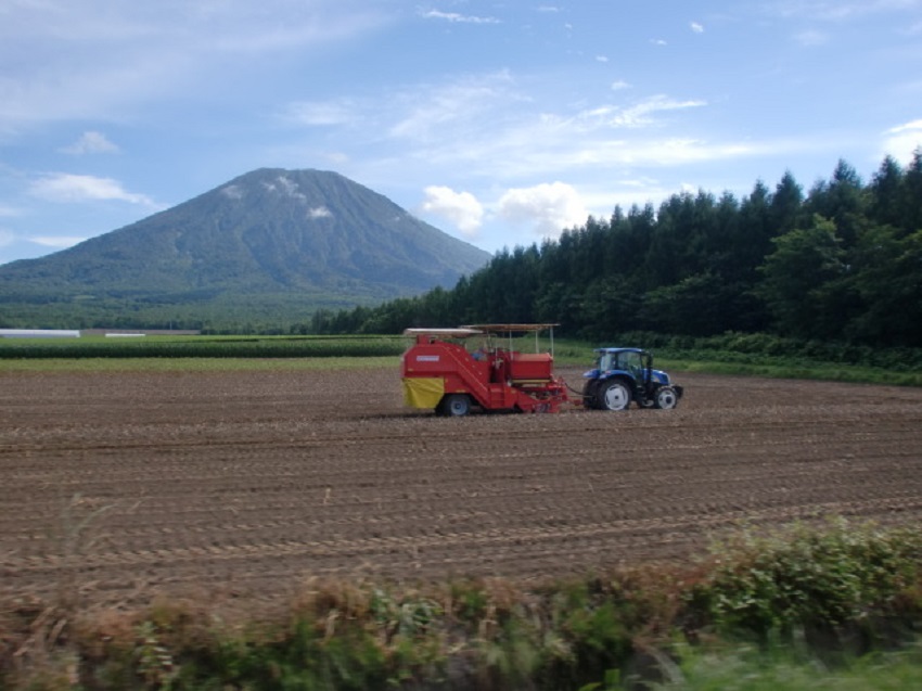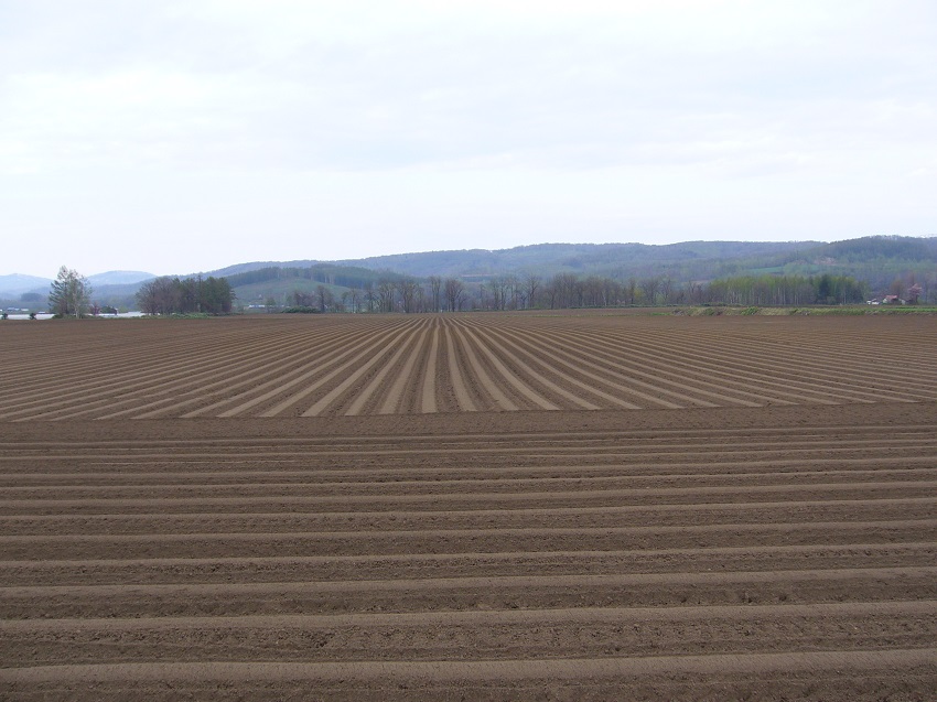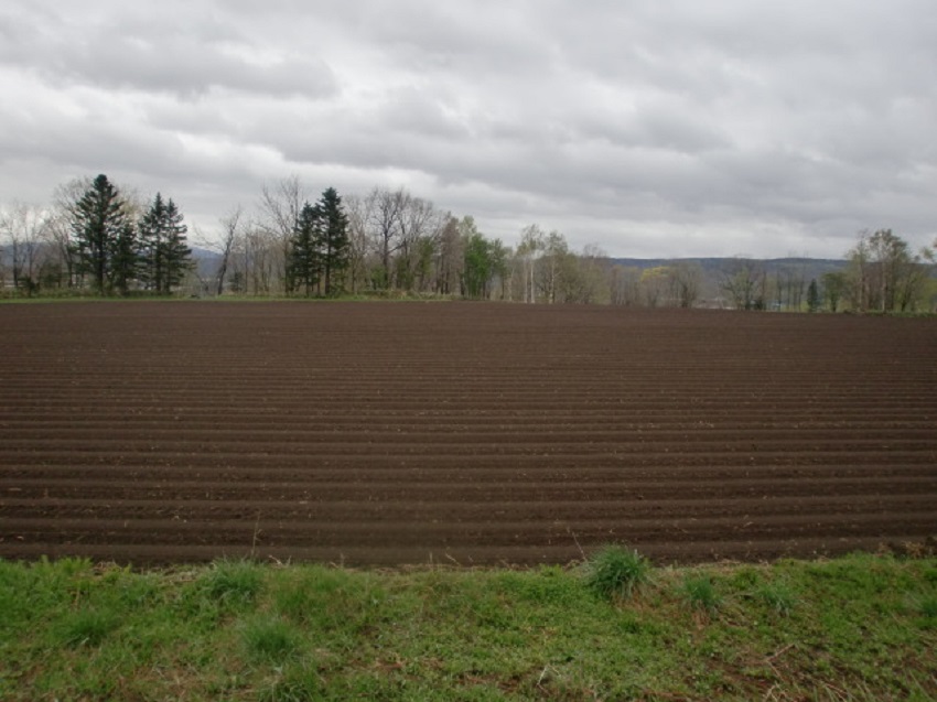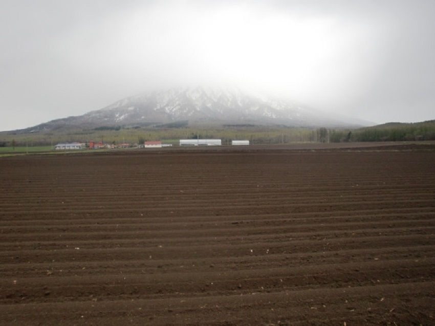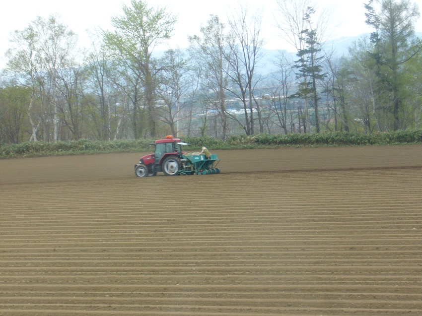 ・上段:倶知安町馬齢しょの播種状況。5/10撮影。