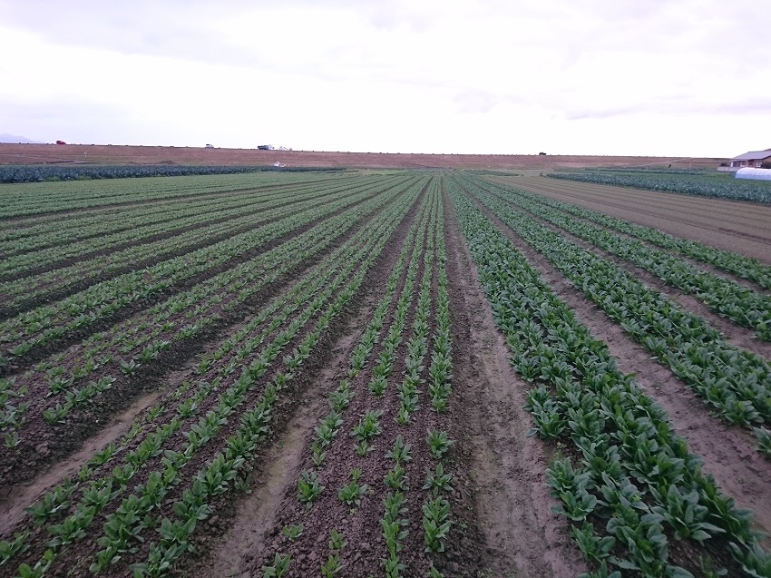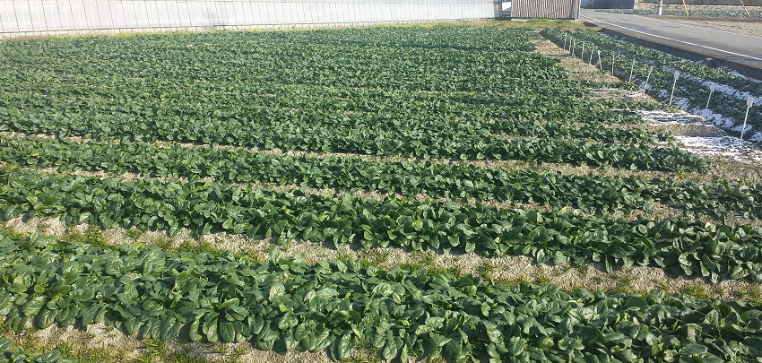 ・現在収穫中のほうれんそうは、播種の遅れが全体的に見られたが、その後は順調に生育をしている。