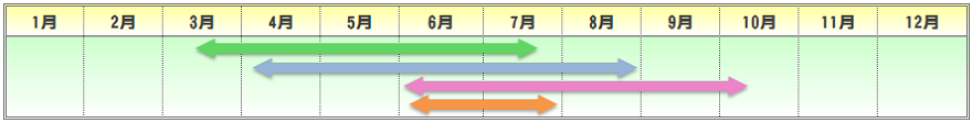 | 播種期 | 定植期 | 収穫期 | 出荷最盛期 |