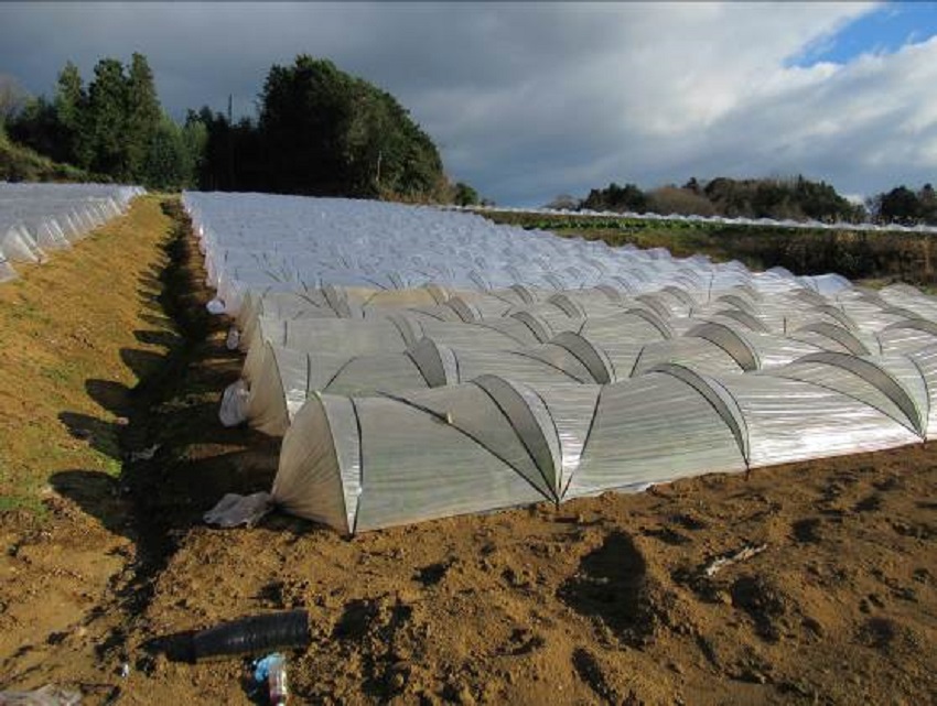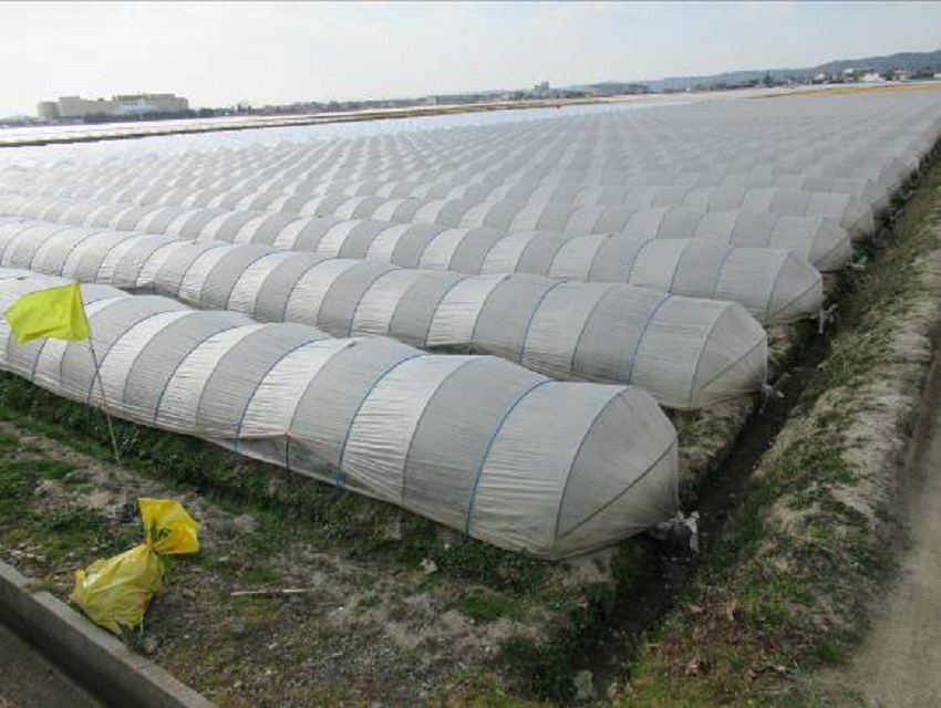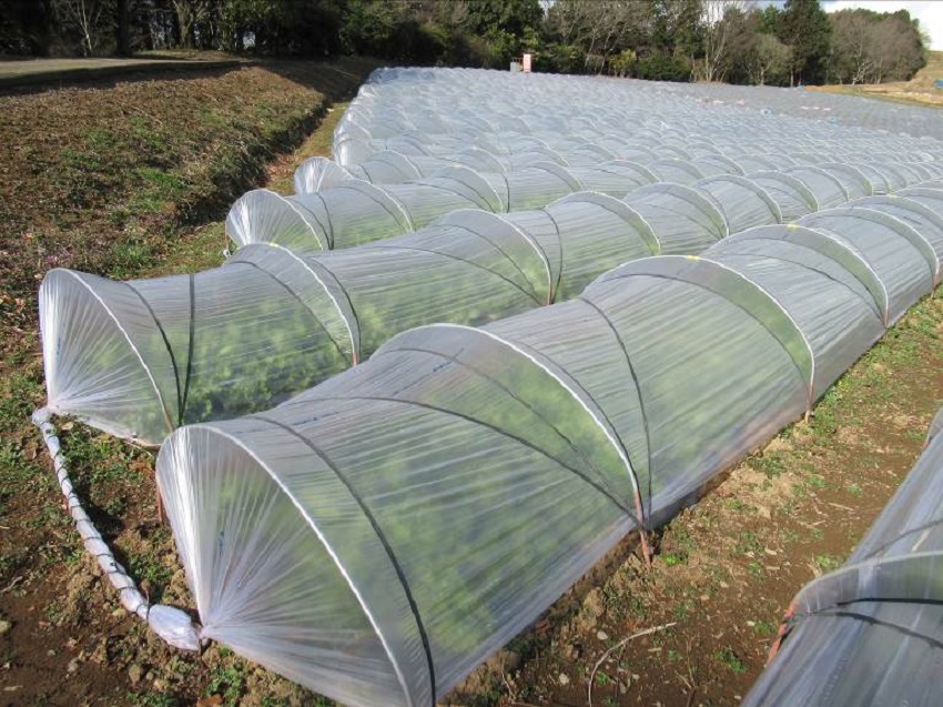 ・中上段:病害虫もなく、生育良好。 ・中下段:若干のアバレはあるが、病害虫もなく生育良好。年内収穫予定のためか防寒なし。10/16定植ものまでを年内収穫予定。 ・下段:JA集荷場。行き先の決まっているコンテナ集荷。 | ||||||