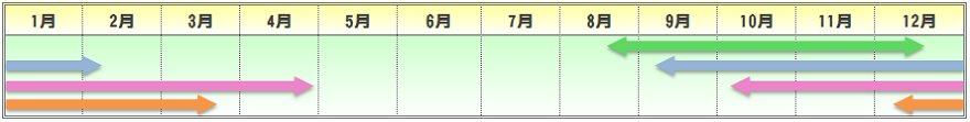 | 播種期 | 定植期 | 収穫期 | 出荷最盛期 |