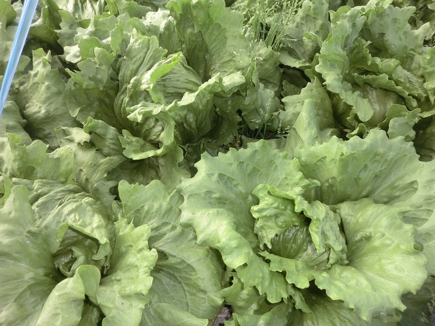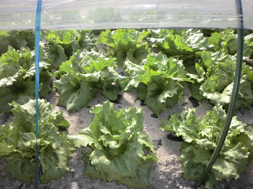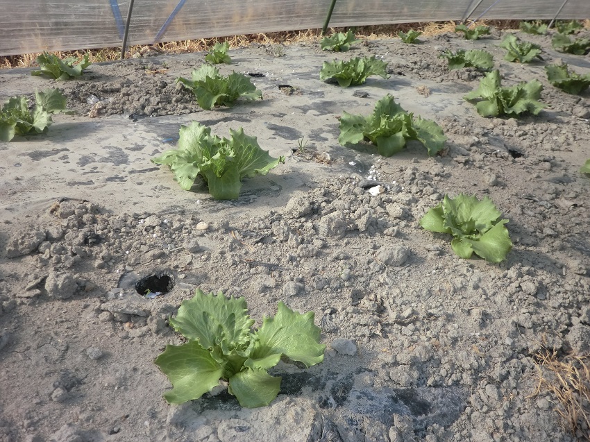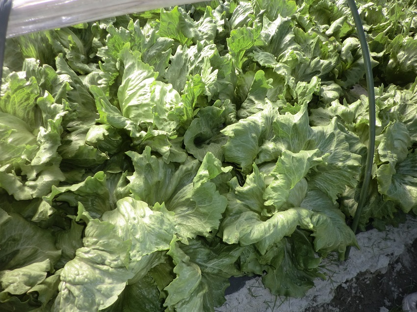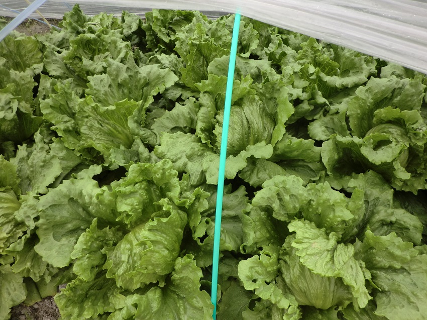 写真は11月中旬定植で2月上旬出荷予定。 品種は、アスレである。 1月上旬までに、被覆作業を行う予定。 ・中下段、下段:概ね生育は順調である。 写真は10月下旬定植分で1月上旬出荷予定。 現在、病害虫の被害は見られない。 | ||||||